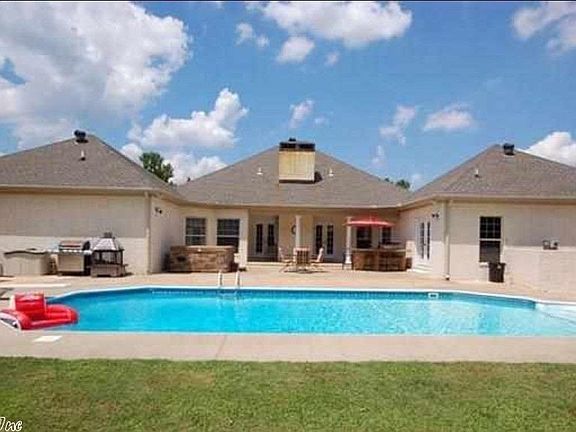 Spacious ranch home 4 bed, 3 bath on 4.8 acres. Close to town. Beautiful fenced in ground pool, stocked pond with catfish, crappie, bass. 2 car garage with full bath and granite sink. Chef's kitchen with 2016 updates. Teak floors throughout. 700 sqft guest/pool house with 2 bedrooms, full bath and kitchen,washer/dryer hook ups. 5 full baths total on property! New pool pump, new roof 2017 on main home and pool house. 2018 water heater. 2 additional storage bldgs. Gas generator supplies entire property.