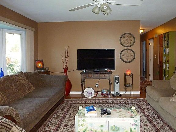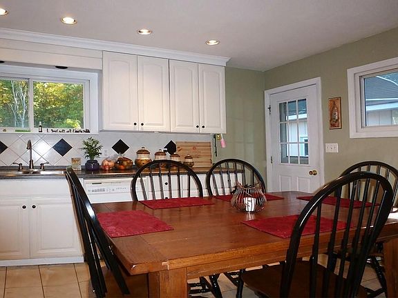 Great Space in this 5 Rm, 3 Bdrm Ranch style home with wide open front entry Living Rm, large bow window, hardwood floors & open staircase to partially finished basement. Oversized fully applianced Kitchen with loads of white cabinets, tile backsplash & large family Dining area. All 3 Bedrooms generous in size - Master Bdrm may appear small with oversized bed at this time. Gas heating system ,generator , central air, inground sprinklers, vinyl exterior. Yard abutts conservation land, oversized deck, in-ground pool & one car detached garage.