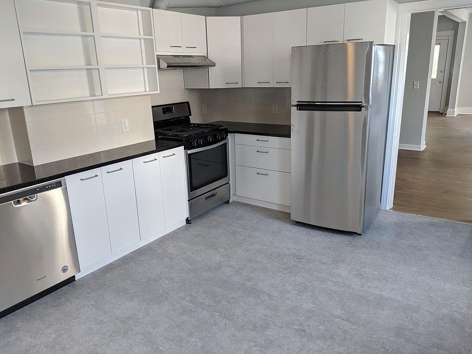 Renovated two level 3 bedrooms 2 bathrooms, town home style apartment in Waltham. This apartment was gut renovated and features a brand new eat in kitchen with stainless steel appliances and stone counters. All new flooring on the first floor and freshly buffed hardwood flooring on the second floor. Both first and second floor bathrooms are renovated as well. Apartment features high ceilings with ceiling fans in most rooms, generous closet space in all three bedrooms (upstairs). There's a full bathroom on each floor and a large office space off the dining room. Laundry is in the basement and there is private driveway parking for up to 3 cars. Heating, hot water and cooking are all by gas. Conveniently located within 1/2 mile to Brandeis University and .7 miles to the commuter rail at Moody St. or a 1/2 mile to Restaurant Row on Moody St. No smoking and No Pets Tenants pay their gas utilities and electricity