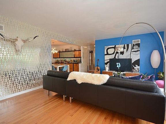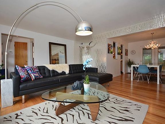 AMAZING MID CENTURY MODERN with original details and stylish renovations on a charming Highland Park CUL-DE-SAC*Updated bathroom with gorgeous mosaic tiles, oversized shower with body jets, and double bowl vanity*Awesome built in bar/buffet in dining room*French doors to easy care outdoor oasis with deck, separate patio and lush foliage*Kitchen updates include stainless steel appliances (Miele dishwasher and 4 burner Bertizonni chef's gas stove)*Finished basement GAME ROOM boasts original pine paneling and a "bar"*Large laundry room has extra stove to use for parties/holidays*Huge lower level storage room*Two car integral GARAGE*This gem is a rare find!