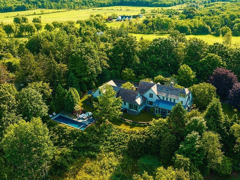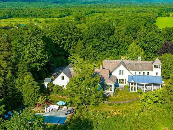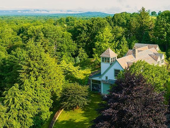 Set privately on a South Amherst hilltop lined with fruit trees and offering spectacular views, this incomparable contemporary home has been extensively updated. Thoughtful renovations embrace the property's unique grounds, welcoming in natural light and inviting you to make full use of the outdoor spaces: an expansive screened porch; heated gunite pool; and yard area enclosed by stone walls. Inside, kitchen, dining, and sun room flow breezily together and feature all new top tier finishes and appliances. The spacious living room sports a new bluestone hearth and custom plantation shutters. On the upper level, find three bedrooms with en suite baths, including a remodeled primary suite with captain's stair leading to a cupola and panoramic views. The north wing offers additional bedroom and flex space above garage. New ground-mount solar and mini splits allow for energy-efficient living. Numerous other improvements and features. This peerless home must be seen to be believed.