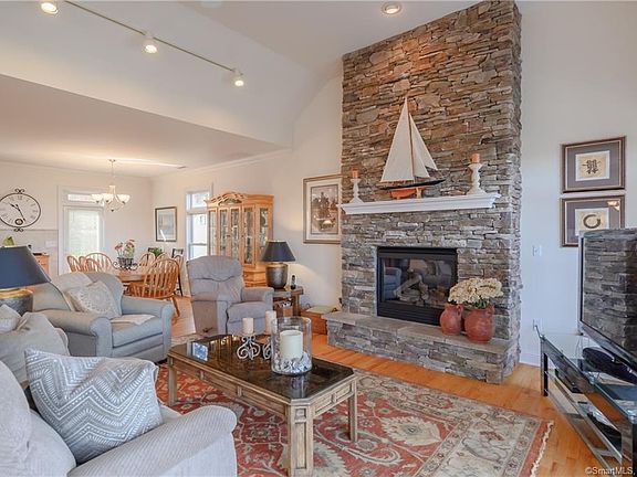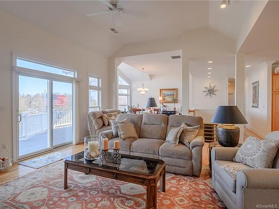 SUNSATIONAL WATER VIEWS! Located just steps or golf cart ride away from community beach on Candlewood Lake. Watch awe-inspiring sunrise with your morning coffee or relaxing on the patio with lake views in the evening! This 3,000 sq ft home w/3+ bedrooms & 3 full baths offers an Open Floor plan w/plenty of entertaining space! Featuring a Chefs Kitchen complete w/center island(sits 4+), granite counters, SS appliances, double ovens, gas cooktop & pantry. Vaulted ceilings in living room w/floor to ceiling stone gas fireplace & dining room. Hardwood floors throughout main level. Master Bedroom Suite has jetted tub, shower stall, double sinks & radiant heated floors. Add'l 2 bedrooms & full bath complete main floor. Slider to large front deck perfect for outdoor gatherings. Welcoming foyer leads you to family room w/the second floor to ceiling stone gas fireplace, bedroom/office, full bath, laundry, & storage rooms. Four car garages w/2 bays setup for a Man cave w/heat. Home has many addl features: crown molding, tiled backsplash, wainscot, built-ins, efficient propane 2 zone heating & cooling, & security system. Enjoy all the Candlewood Lake amenities: variety of water sports for swimming, boating, fishing, kayaking or take in the peaceful feelings of being by the Water. Easy Commute to I84, Rte 7 & 60 min to NYC, Shopping & Dining. Amazing Opportunity to live a relaxing lifestyleget ready to enjoy Summer! Motivated Sellers! This home is move-in ready without any work needed. It truly feels like a new construction. A home built for entertaining! Blue stone pavers lead to the front entrance and creates an ideal area for your rockers or Adirondack chairs while enjoying your lake views.