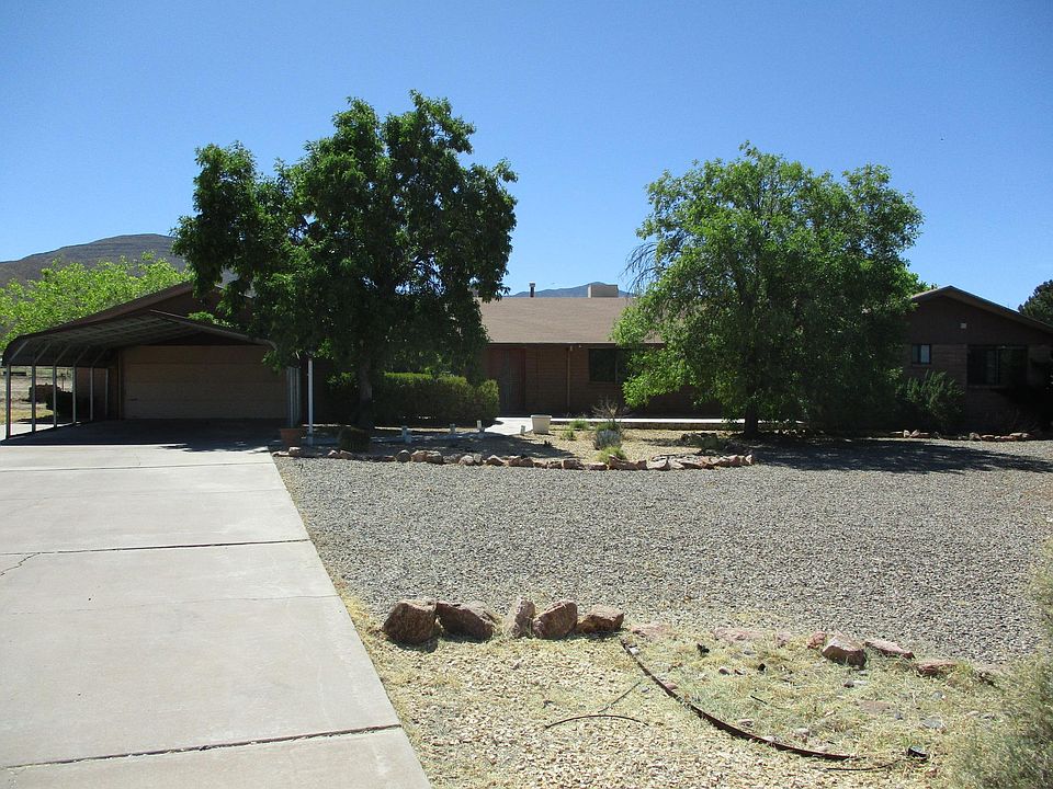 Kitchen includes electric stove, refrigerator, dishwasher, microwave. Den/family room with fireplace. Guest bedroom with private bathroom. Large master bedroom with attached private master bathroom and study/office. Master bathroom has dual sinks and whirlpool jet tub. Water Softener and reverse osmosis. Stainless steel washer and dryer. Rock landscaped front yard. Fenced back yard with sprinkler system. 2-car garage with carport at garage entry. Approximately 1 1/4 acre lot. 3092 SQFT. PETS ON OWNER APPROVAL