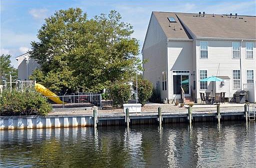 Spectacular Waterfront END Unit in the Cul-De-Sac with Beautiful Wetland Marsh Views. Private 48 ft Double Dock can park up to 2 Boats! Private backyard with an extra-large patio, natural gas BBQ, water and electric at Dock. Conveniently located next to kid's playground! Flood Insurance is included in HOA fees!