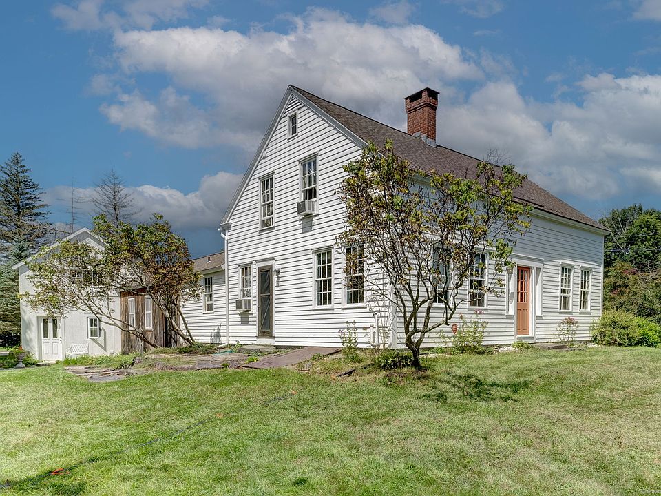 What a beautiful antique home, circa 1840. This home has been lovingly maintained and updated over the years. You'll love the wide board floors, exposed beams, doors and hardware, and the beautiful woodwork. The modern kitchen is a bright and open space with exposed beams, walk-in pantry, a cozy breakfast bar, and is open to the dining room and a bricked wall with a woodstove. The front-to-back living room has built-in bookshelves, and there is a half bath on the main level. The workshop area with a woodstove is between the attached 2-car garage and the main home. Upstairs in the garage is a beautifully finished space with wood floors and a cathedral ceiling with exposed beams - perfect for a home office, home gym, hobby space, rec room...the possibilities are endless! The garage itself is spacious, as well! Upstairs in the main home, you'll find the full bath and a 3 nice sized bedrooms - all with wood floors. The basement is one of the nicest stone basements you'll see! The grounds are lovely and include a perennial garden, stone patio, lots of space to relax and play, and two driveways - one in the front (Skungamaug Rd) and one in the back (Torry Rd). Great location that is off the main route, but has easy access to I-84.