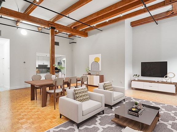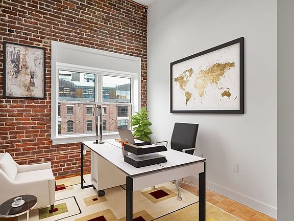 Top floor one bedroom and den ideal for creating an in house office. or use as a two bedroom...high ceilings @13.5 ft. Exposed bricks and beams, Parquet hardwood floor through out...two south facing windows.... washer/dryer connection in the house,,,,AC, doorman, extra storage. Rental parking or resident sticker. Prime Seaport location Steps away from our new Trade Joe's....easy access to the T, Pike, Expressway, Financial District, Amtrak and Logan....plus easy to hit the Fast Ferry to Ptown. Brand New Windows, all new kitchen, and redone bathroom...Great place for displaying large art pieces....Potential to add skylights, non-bearing walls can easily be moved to suit your taste and needs...with higher ceilings potential to add in loft space second story or building in added storage above the drop ceiling over kitchen and bathroom..Amazing potential and space...awaits your custom finishes....opportunity to make this Seaport Gem your own.