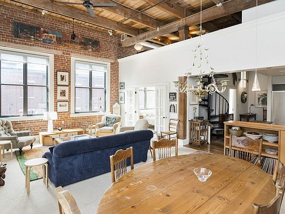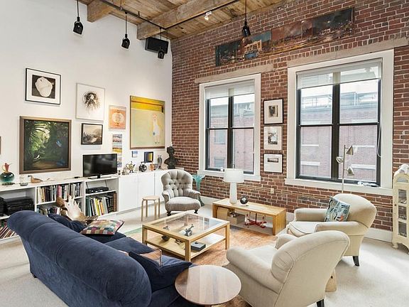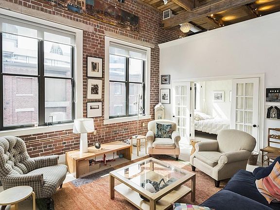 Sun filled south west corner penthouse 2 bedroom 1.5 baths loft home , very high ceilings 14.5 to 15 feet high, exposed bricks and beams. w/d, open kitchen...hardwood floors in entry around into kitchen...spiral staircase up to office overlooking living/dining area. AC, W/D in unit, .. Prime seaport location. Easy access to the T, Pike, Expressway, Airport, Silver Line, AMTRAK, FAST FERRIES to the Cape and so much great living. At last count about 102 places to grab a coffee, drink or dinner with in .05 of this home. Available Oct. 1st or sooner....six month lease perhaps ability to extend one or three additional months. Broker fee of one months rent to paid by tenant. This is ideally a six month but slightly longer extension may be possible up to Nine months ask the listing agent. rental parking available $400 a month. Now with brand new frig and new paint. Available and ready to go for Oct. 15TH., 2017