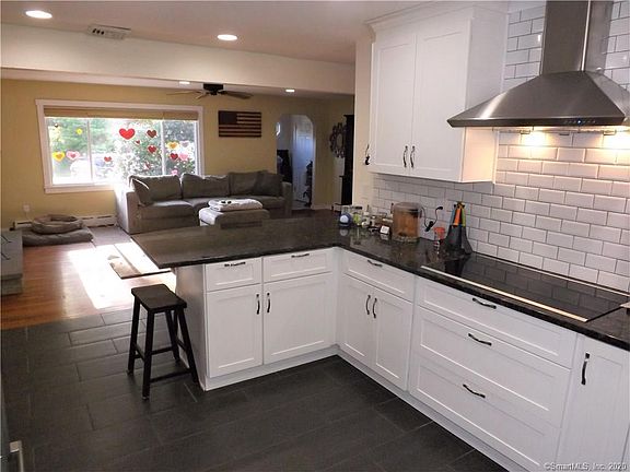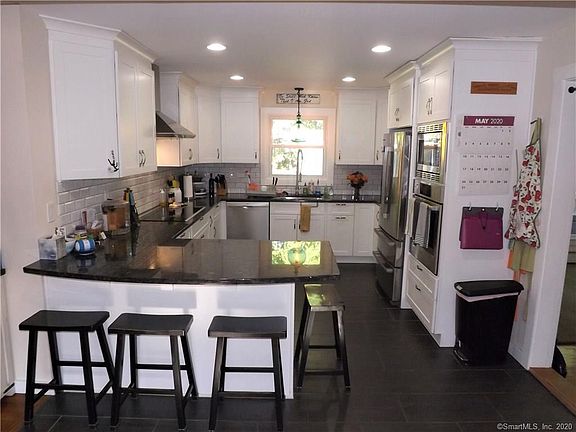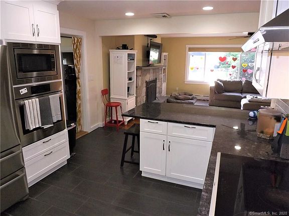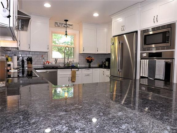 Looking for a very well-maintained and nicely updated home in a great Trumbull neighborhood? You've found it! Beautifully remodeled kitchen with granite counters, all newer Bosch stainless-steel appliances, breakfast bar, tile floor and recessed lighting. Remodeled full bath with fully tiled shower/tub and double sinks on granite covered vanity. Master bedroom also has an updated half-bath. Hardwood floors throughout all three bedrooms, living room and dining room. Dining room location is versatile in use and is currently used as a combo den/dining area, with access to deck and yard. Some special features and recent improvements include a fieldstone fireplace in living room, a walk-up attic for easy access to storage space, newer maintenance-free vinyl siding, thermopane replacement windows, newer driveway, front walkway and steps. Newer central air. New energy-efficient Navien all-in-one wall-mounted heating/hot water unit. Enjoy the fully fenced-in yard with wood deck great for entertaining and large shed for additional storage needs. Great curb appeal. Wonderful, convenient location close to schools, shopping, restaurants and highways. Excellent Trumbull school district (Jane Ryan Elementary!) This home has it all, and more!