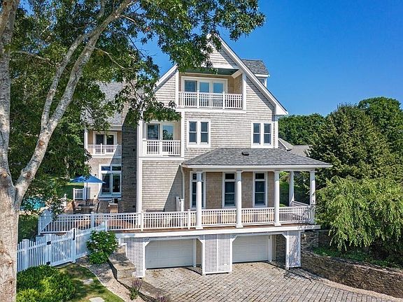 Strategically situated on the uphill side of a serene private seaside cul de sac, framed by impressive dry-look stone walls & terraced gardens, this unique home combines classic style w/modern features and systems to provide comfort & quality.From stirring sunrises to shimmering moonlit waters, dramatic views of the Cove & Buzzards Bay & the enchanting Elizabeth Islands abound from the wrap-around covered porch, the expansive deck, three upper story balconies & from most of the more than 50 windows & French doors. Porcelain tile & engineered cherry hardwood flooring overlay a concrete heat mass throughout the home providing a comfortable & silent "no cold floors" environment.Super-insulated 2x6 construction provides additional operational efficiency.Custom fluted painted poplar woodwork, crown moldings, tray ceiling, custom cabinetry, high end plumbing fixtures, & ten-foot ceilings, all combine with innumerable additional quality features to create a one-of-a-kind living experience