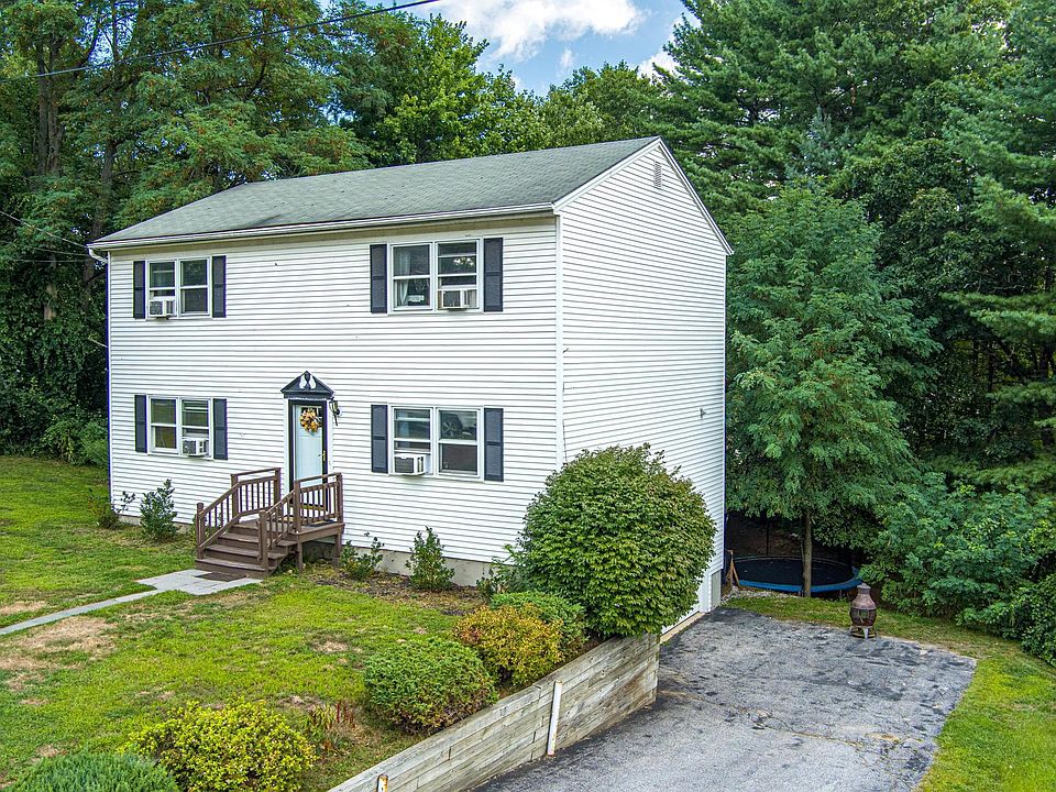 Need space? This is a must-see 4 Bedroom in Hooksett for under $400,000!! Outside you are set back from the road, have a private back yard, area for a fire pit, lots of parking and a 1-car garage. Inside, you enter into the large living room with plush gray carpet. This opens to the updated kitchen with adorable coffee nook, laminate plank flooring, tiled backsplash and stainless steel appliances. The main level offers a very large full bath for the two bedrooms on the first floor to enjoy. Upstairs are two gigantic bedrooms. One has great bright windows and two closets. The primary bedroom runs from front to back of the house and has loads of storage. The sitting room on the way to the primary is plumbed for an en-suite bathroom. You just need to bring your imagination. The lower level has a partially finished rec room for overflow space. The house has extensive, updated, copper plumbing with a newer hot water on demand system. This home defines turn-key and is ready for your personal touches! Delayed showings until 12/3.