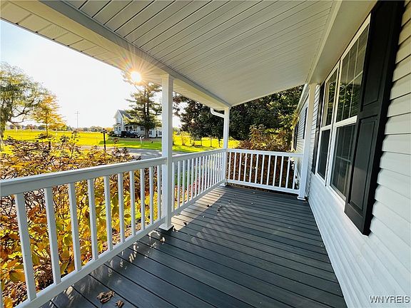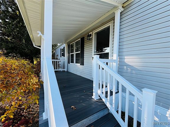 As you enter, you’ll be greeted by an inviting open floor plan that seamlessly connects the living room, dining area, and kitchen, creating a spacious and airy atmosphere ideal for entertaining. Natural light floods the space, enhancing the warm and welcoming feel. Convenience is key with a first-floor laundry. Master bedroom complete with a generous walk-in closet and attached bathroom for added privacy and comfort. Step outside onto the large deck, where you can unwind and enjoy views of the surrounding trees and wildlife—a perfect spot for morning coffee or evening relaxation. The landscaped yard adds to the home’s charm, providing a serene outdoor oasis. The property also features an insulated shed equipped with electricity, perfect for use as a workshop or extra storage. One mile to Chautauqua lake and ten minute drive to Bemus Point! Low lot rent makes this truly affordable living.