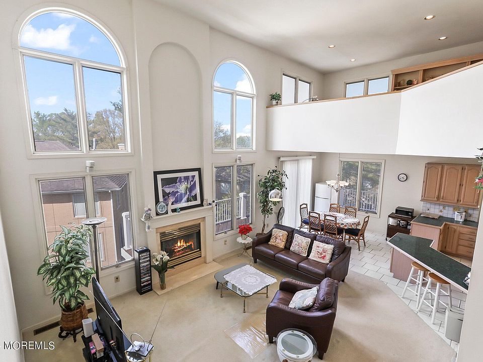 Nestled in the sought-after Beau Ridge community of Holmdel, 15 Spyglass Hill Court presents a wonderful opportunity to purchase as it comes to the market for the first time after being cared for by its original owner. This four-bedroom, three-and-a-half bath home blends comfort with potential, offering a fabulous and spacious layout ready for personal touches and updates to begin a new chapter with its next residents. A gracious two-story vestibule opens to a foyer with a marble floor. The thoughtfully designed home has freshly painted walls in neutral tones with a subtle orange peel texture that is prized for its durability and visual interest. A step-down formal living room opens into the dining room, making it an ideal space for hosting gatherings. Opposite the formal rooms, the two-story family room, with its soaring ceilings and arch-top windows flanking a cozy gas fireplace, serves as a central hub for relaxation and informal entertaining. This open area leads directly into the kitchen, equipped with a functional center island cooktop and a breakfast bar on the peninsulaperfect for casual meals. A sunny breakfast nook with a sliding glass door offers direct access to the expansive wraparound deck, inviting the beauty of the outdoors in. Privately situated on a mezzanine level, the primary suite features a seating area with a walk-in bay window and an ample en suite bath with a soaking tub, separate shower, and private commode room. The upper level has two additional bedrooms, a shared hall bath, and a loft area complete with a built-in desk and hutch, ideal for home office or study space. Expanding the living space, the finished walkout basement includes a wet bar, a recreation room, and an en suite bedroom, perfect for hosting guests or multi-generational living. This clean and well-maintained home is an excellent prospect for those looking to infuse their personal style and modern upgrades. This home promises the freedom to craft your ideal living space in one of Holmdel's most desirable neighborhoods. Beau Ridge isn't just a place to live; it's a lifestyle. Residents enjoy access to a community clubhouse, pool, tennis and basketball courts, and a playground, making it a perfect setting for active lifestyles. Moreover, the convenience is excellent for commuters, with the Middletown train station merely two miles away and easy access to the Garden State Parkway about 1.5 miles from your front door. 15 Spyglass Hill Court is your chance to embrace a serene suburban life with endless possibilities for customization and convenience at your fingertips.