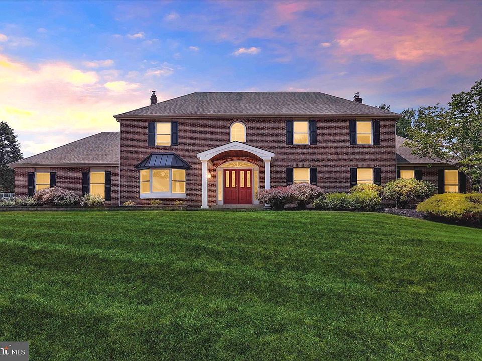 Great Opportunity! New roof! Improved Price! Council Rock Schools, on 1 Acre, cul-de-sac street in Timber Valley! Nestled on a picturesque, elevated corner lot, the stately and elegant brick front Chateau Federal Elite is a move-in ready, freshly painted, 5 bedroom, 3.5 bath single-family home spans over 4,400 sq ft, making it the largest of the Timber Valley models, with an additional 2,000 sq ft in the fully finished, newly carpeted basement. Spacious two-story grand foyer with lovely circular staircase which flows seamlessly into the formal dining room with new bay window or into an expanded formal living room, awesome for large gatherings! The beautifully remodeled and widely expanded open concept kitchen with a large sunlit breakfast area is every chef's delight, featuring a multi-level granite cooking island w/seating area, upgraded solid wood cabinets, a new stainless steel self-cleaning double oven, stainless refrigerator w/built in-ice and water dispenser, built-in gas stove top, built-in microwave and built-in desk area. Convenient sliding doors open from the breakfast area to a large open stone patio space surrounded by large pine trees and fenced yard, then the large covered porch offers shade and protection from the weather for year round grilling under a roof. The large family room, with its open-concept design with the kitchen, boasts built-ins around a newly installed gas log-burning brick fireplace(2024). A quiet library/office is situated just off the living room, ideal for work, study, or relaxation. Upstairs, the primary suite includes a large walk-in closet w/built-in storage and an en-suite bath with a whirlpool tub, double vanity, and separate shower/toilet area. Four additional generously sized bedrooms, all with ample closet space, share a hall bath. Two hallway linen closets provide extra storage. The huge newly carpeted finished basement includes a built-in bar, full bath with a shower, storage, and large closets. The driveway can easily accommodate 6-8 cars besides the very spacious 3-car garage! This exceptional home, set on a rare, fenced one-acre lot, on a cul-de-sac, is a must-see!Council Rock Schools will allow children to start school with a signed contract before closing!New roof & radon system!Lower taxes were reassessed!