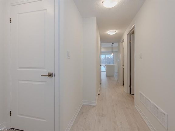 Great opportunity to purchase a brand new condo, backing onto greenspace, at Harvest Park in Doon South! This is a spacious, one bedroom, one bathroom home, with light tones and stylish finishing choices. The main living space is open concept, with a white shaker kitchen and island with quartz countertops. The living room features large windows and sliders to a patio looking out to pond and trees -no houses behind you! The bedroom is just right, with two windows to bring in natural light. Location is excellent, just minutes to 401 access. Comes with one surface parking spot. Condo fees include landscaping and snow removal, building exterior, building insurance and internet. Not far from Conestoga College. Doon South is an established neighbourhood with plenty of walking trails. Current promotions include $10,000 discount on price (already reflected in MLS price), 0 development charges, included kitchen and laundry appliances. Ready now! If occupying within 90 days, deposit of $25,000.