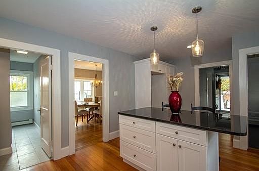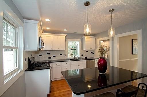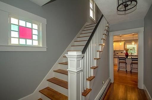 Fabulous village colonial has been completely updated and is ready for new owners. Recent renovation perfectly blends modern updates with the charming details of it's past. You'll note a stunning new eat-in kitchen with granite counter tops, plenty of cabinets for storage and stainless appliances along with the original hardwood floors which have been carefully restored. Formal dining room with chair rail, hardwood floors and beautiful high ceilings leads to the living room. Upstairs the master has hardwood floors and 2 closets. 2 additional bedrooms both with hardwood floors and a second full bath with laundry. Full basement with the potential to finish for add'l living space. Outside, the front farmers porch or back patio would be a great space to sit and relax. Plenty of space in the yard for play or gardening. Reeds Ferry shed with electricity is great for a small work shop.