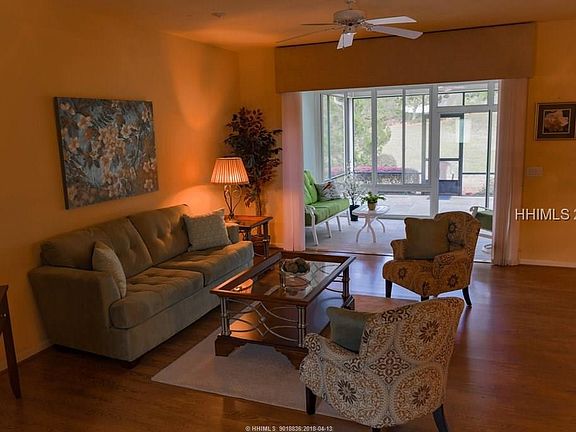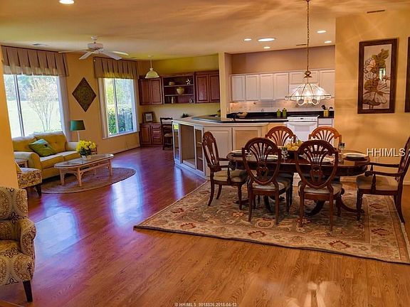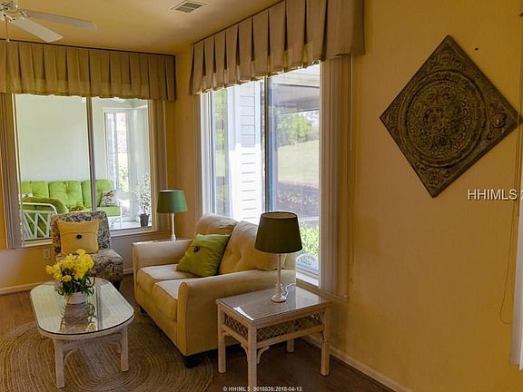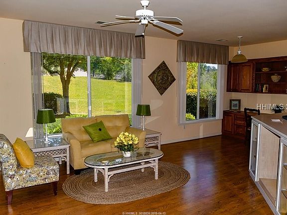 Huge open floor plan, the Bluffton Eastman model offers multiple options for furniture placement. The kitchen boasts lovely granite countertops, painted cabinets w/ under cabinet lighting, pantry, newer fridge & newer Bosch dishwasher. Enjoy the lovely Carolina rm (can be den) & screen porch. There is no carpet in the entire home! Both the mstr & guest bdrm have a bay window w/ inviting window seats for extra storage. Lots of closets, his and hers in the mstr & another walk-in closet in the guest bdrm. Both bathrooms have ceramic tile flrs. Laundry room w/ newer Bosch washer & dryer. Tek storage & flooring system in garage. Gar scrn.