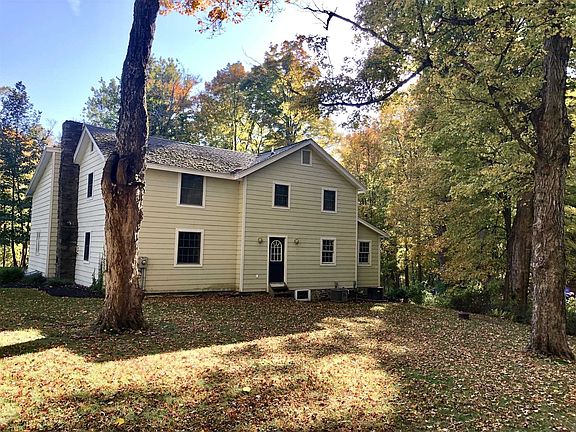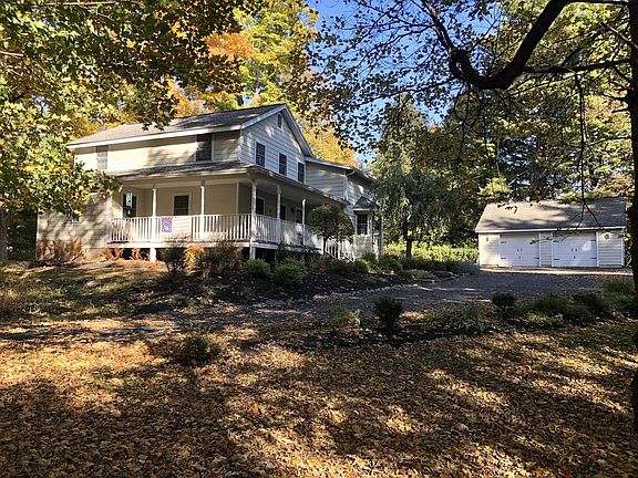 This charming circa 1830 Rhinebeck Farmhouse is privately sited on nearly 6 acres on a private dead-end road. The parklike property has mature perennial flowerbeds, a stone fire pit area, in-ground heated pool and soaring mature trees. The house has been thoughtfully renovated and is in excellent condition. The first floor features a large sunny eat-in kitchen, a living room with a gas fireplace, family room, formal dining room and a half bathroom. The second floor has a spacious master bedroom and bathroom, 2 additional large bedrooms and a 2nd full bathroom with laundry. The home is light filled with hard wood floors throughout, beamed ceiling, central air, a wine storage area in the basement and a wonderful rocking chair front porch. The detached two car garage has plenty of storage. Located one mile from Rhinebeck village, and just minutes from Amtrak train station and Bard college. This property is the perfect weekend getaway or a full-time home. A must see to full appreciate all this property has to offer.