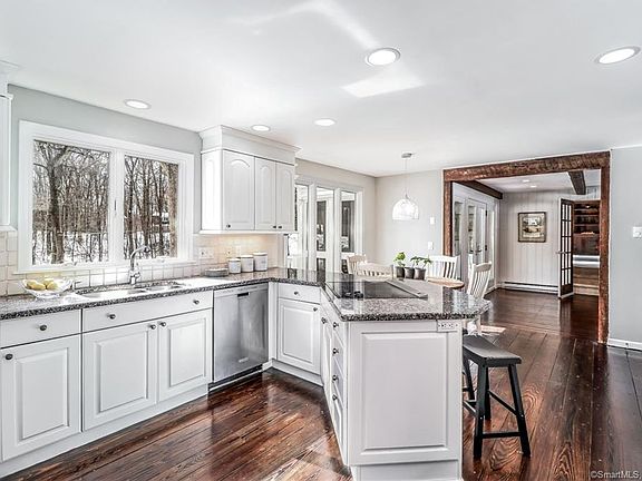 FABULOUS NEW PRICE on this home w/WATERVIEWS! Look no further then this charming, move-in ready Colonial nestled back from the road, bordering Weir Farm Natl' Historical Park and backing to a large pond. Located on a cul-de-sac street within the Award Winning Twin Ridge community. Hardwood floors, exposed beams, crown molding and well portioned rooms gives this home both comfort and character. Delight in the bright and trendy white kitchen featuring Wood Mode quality cabinets, granite, Subzero, double ovens, brkfst bar & dining nook. The open floor plan into the FR is ideal for enjoying a fire on a cold night. The expansive bonus room w/exposed beams & built ins just beyond is perfect for a man-cave, office, playroom, exercise or media room. Holidays or more formal affairs can be hosted in the spacious living room w/ FP and the formal DR w/Anderson French door. Dine alfresco or watch the sunset from the lg deck or 3 season screened porch w/ "Trex like" flooring. Retire to the master bedroom with FP, his/her closets and updated bath. 3 addl' bedrooms, updated full bath and laundry complete the UL. Expansion potential in the walkout LL too. Enjoy the great outdoors with hikes/tours through Weir Farm or canoeing/skating/fishing on the pond. Lots of social events offered through HOA. Well-maintained & loved. Generator hookup, A+ energy efficiency rating, young roof, new windows, new septic, young H20 heater, freshly painted interior & exterior. Only Minutes to the train station.