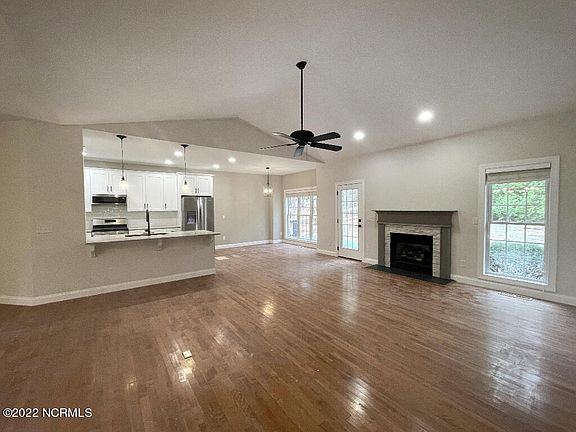 REMODELED TO PERFECTION!! This one is a must see in person!! In a quiet neighborhood near Lake Pinehurst, this beautiful 3 bed, 2 bath split floorplan home boasts 9ft ceilings throughout with a vaulted ceiling in the living room, solid Maple hardwood floors (carpeted primary suite), all new lighting and hardware, and a stacked stone gas fireplace. Stunning new kitchen with white wood cabinets and soft close drawers, Quartzite countertops, granite composite sink, tile backsplash, all new appliances including a gas range, and spacious walk in pantry. Primary bedroom has door to back deck and en-suite bath with huge walk in shower, 84'' double sink quartz top vanity, linen cabinet and walk in closet. Large guest rooms share a completely new guest bath with marble accents. Laundry room leads to a large 2 car garage with room for a work bench or storage. The new Trex deck steps down to a fully fenced and terraced back yard. Home also has a Generac whole house generator!