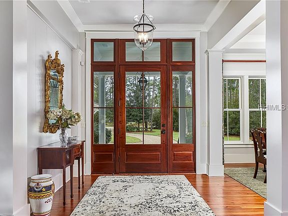 Located less than a ½-mile from the heart of Wilson Village in Hayfields, a slice of Lowcountry perfection awaits you at 15 Sunfire Drive. Catch golden sunrises over the lake and end the day with an oyster roast in your spectacular outdoor entertainment zone, which features a screened porch, gazebo with fireplace and grill, and private dock. The interior is just as spectacular with pine floors throughout, high-end appliances, and fireplaces in both the great room and den. This 4 bedroom, 4.5 bath home features a master ensuite and 2 bedrooms on the first level. The 4th bedroom with bath is situated over an attached 2.5 car garage.