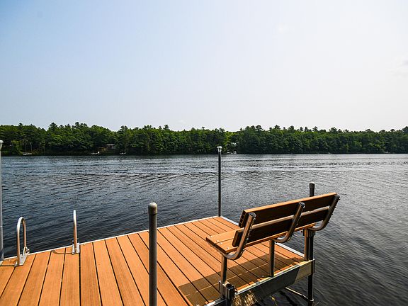 The exterior showcases classic New England architecture with cedar shingles, large windows, and a spacious deck that overlooks the tranquil waters as well as a large 2 car garage and workshop. Plenty of room for all your toys!