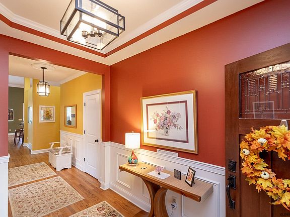 Stunning Marini built Ranch home in the desirable Lake Ridge community. This 3 bedroom 2 full bath home offers a modern open concept floor plan with high-end finishes... Dining room with Chair Rail & Tray ceiling, family room with stone gas fireplace, light & bright sunroom, Kitchen offers upgraded maple cabinets w/pull-outs, SS appliances, duel fuel oven, granite countertops, backsplash & vaulted ceiling. Hardwood floors & crown molding throughout, 1st floor laundry with barn door, 9ft Ceilings in bedrooms, massive basement, front & rear porch, wonderful paver patio with natural gas grill and beautifully landscaped fully fenced backyard. HOA covers common areas. Don't miss this opportunity to make it yours!