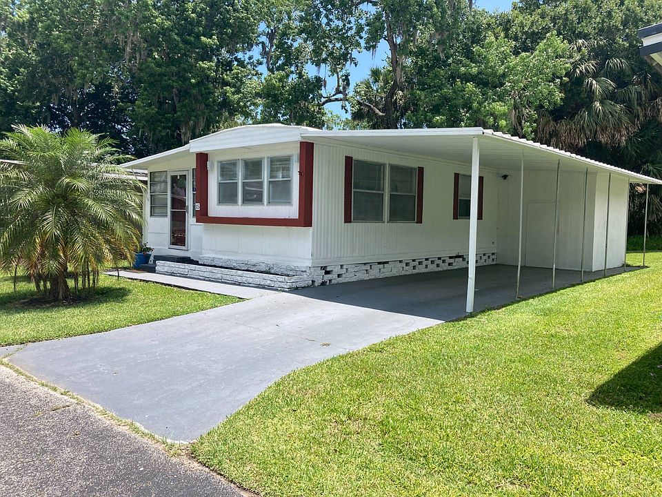 Great things come in small packages at this beautiful open concept large Florida Room will be great for you to enjoy a little peace and quiet. Carriage Cove a 55 plus manufactured home community just minutes to the beach. Great amenities include pool, club house and tons of room to walk, bike. Close to medical facilities, and restaurants. This cozy home is a 1 bedroom and 1 bath with a recently new A/C and Roof done in 2020 Easy to show and motivated Seller. Lot rent currently $871.00 include water cable and sewer Wi-Fi and Lawn care.