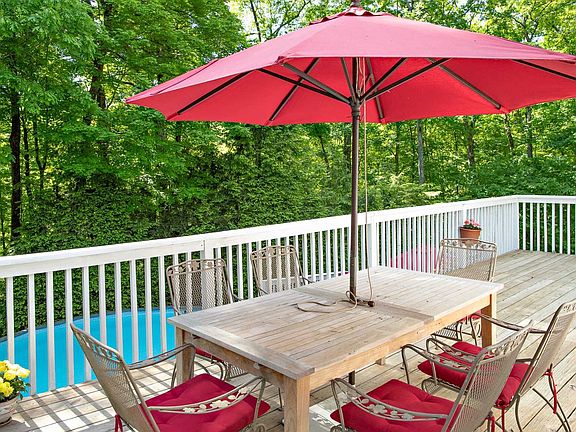 Looking for a new place to lay your head? Don't want to do any work? Love a good workout? Come take a look at this beautifully maintained haven on a quiet, private paved road. You will love the solid oak floors, new windows, the wonderful modern kitchen w/granite countertops, gas cooktop and dining deck plus the woodburning fireplace which centers on the open floor plan. There is a master suite on the first floor with a new marble bath and a walk-in closet, plus a second bedroom with half bath and upstairs there are two more bedrooms and a hall bath. The walk out lower level has the laundry , a half bath, gym, workshop, storage and door to the pool which has a second large deck. This is a must see! 24 Hour notice required for accompanied showings.