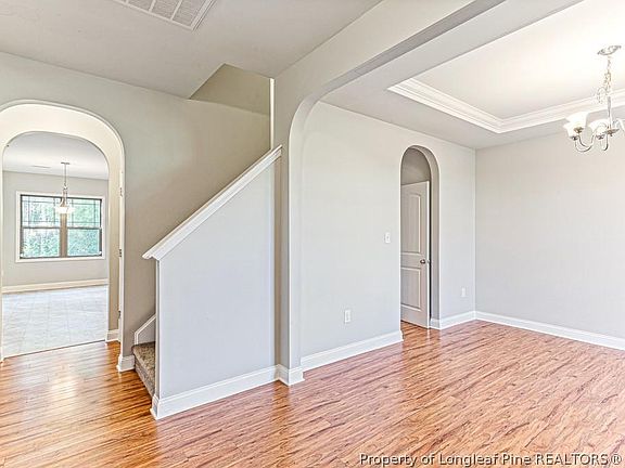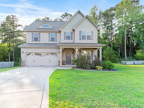 This is the gorgeous home you have been looking for! This home is one of the largest in this much desired neighborhood of overhills creek at 2880 square feet standing tall with 3 stories at the end of a quiet little cul de sac with no back yard neighbors!! This open floor plan features a huge kitchen with island that opens to the living room with separate formal dining room! This house was made with entertaining in mind! The top floor can be used as an in law suite as it features its own bathroom or a quiet place for guests!! Only a few years old this house features new paint, granite counter tops, stainless steel appliances, beautiful LVP floors in the foyer area, gorgeous trey ceilings and curved walkways that add elegance. Located in rapidly growing Harnett County, No City taxes, Low HOA, Close to shopping, minutes to Ft Bragg, and straight shot to Raleigh! You will fall in love with this one!!!