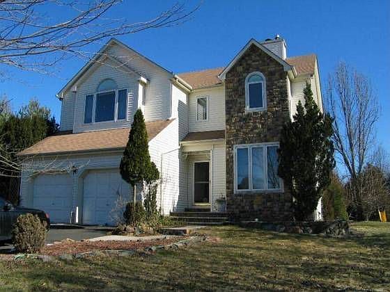 This lovely home is situated on a premier cul-de-sac lot which backs to woods and open space. The sunken living room features a two sided fireplace which adjoins the family room. The family room has two skylights, a cathedral ceiling and a slider to the covered patio. From the eat in kitchen - complete with granite countertops and a large pantry - you can step outside to the three tiered deck which overlooks the patio and back yard. Home has brand new central air conditioning. Four spacious bedrooms - with high and angled ceilings - are on the second floor. The master bedroom has two walk in closets and a 12 x 10 master bathroom complete with a jacuzzi tub and separate shower. One bedroom has a built in Murphy bed which folds up to look like cabinets for additional space when not in use. Some sheetrock has been completed in the large basement which provides great storage space as well as additional living space. Very desirable neighborhood! Motivated Sellers! Present all offers.