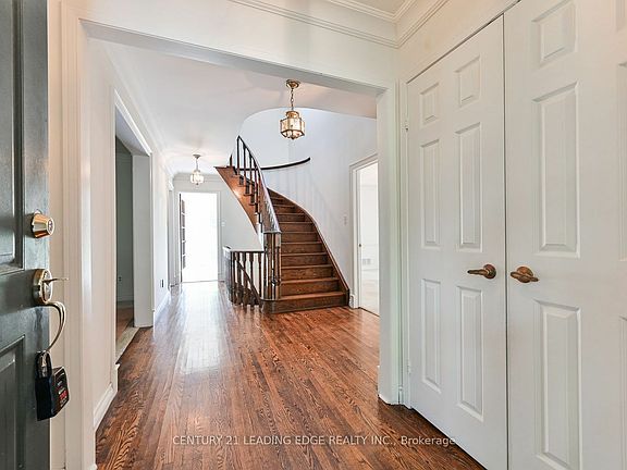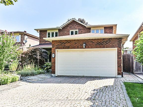 This charming 4-bedroom executive home on a peaceful Markham street shows pride of ownership with its single-owner. The interior features fresh paint throughout. This neutral finish lends itself to any decor style. Spacious principal rooms include a formal living and dining area with elegant crown molding. The updated kitchen, complete with tile flooring, a stylish backsplash, and a breakfast nook, opens to a welcoming stone patio. The cozy family room boasts a floor-to-ceiling fireplace with insert, adding extra warmth throughout the space. Convenient main floor laundry room has a separate entrance to the yard. Upstairs you will find four generous sized bedrooms, including a primary suite with an updated 3-piece bath and a walk-in closet with built-in organizers. An additional space at the top of the stairs is perfect for an office or reading nook. The finished basement offers versatility with three additional rooms, ideal for a recreation or games area or extra bedrooms. Relax in your own private spa room, featuring a sauna, shower, and 2-piece ensuite. Outside, the fenced yard is a gardener's dream with lush perennial gardens. Located just minutes from Markville Mall, the GO train, and Hwy 407, this home is perfect for a growing family.