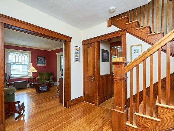 This sun filled Arts and Crafts bungalow offers the best of suburban living in Arlington Heights. The well established perennial garden at the front leads to a welcoming front porch complete with a wooden swing. A welcoming foyer has stained glass windows and natural woodwork. The generous living room leads into a bright dining room with a bow window, built-in china cabinet and a distinctive wood burning fireplace. A well appointed custom cherry cabinet kitchen with stainless steel appliances, granite counters, a pantry and a half bath round out the first floor. The large, over the sink window affords a view of the private garden and deck. Three corner bedrooms, a full bath and laundry room make up the second floor. There is a separate entrance to the private lower level 2 room suite with a full bath -- perfect for an office or au pair. Solar panels provide energy efficiency, minimal electric bills and Solar Resource Energy Credit.