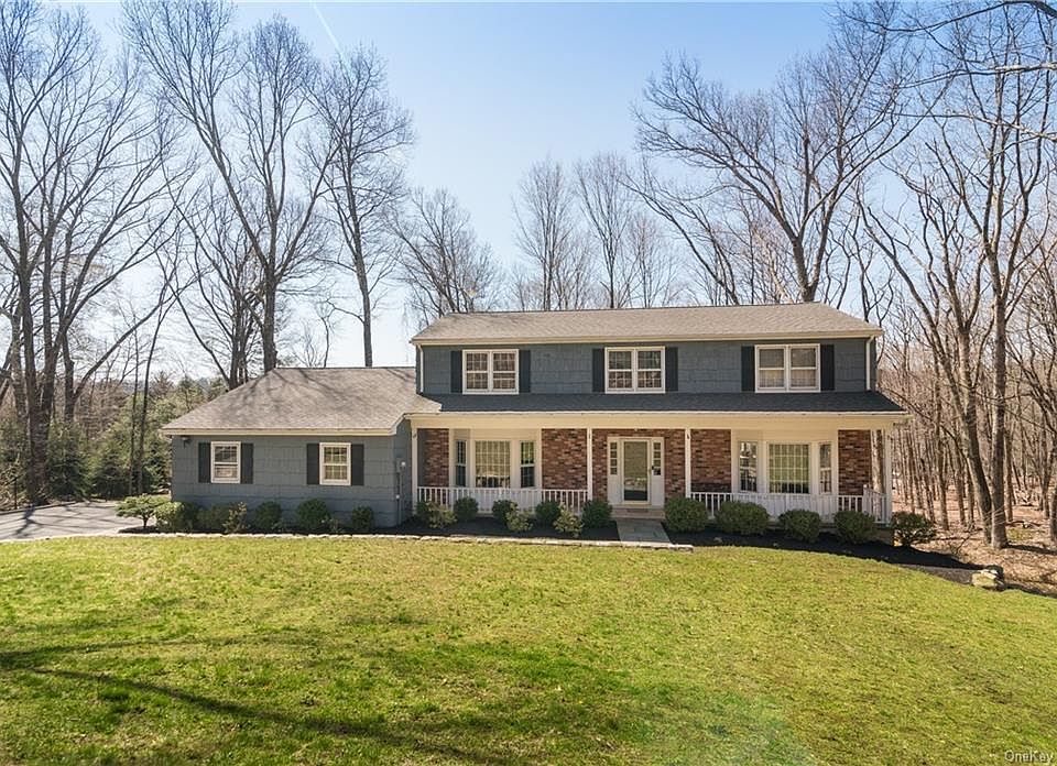 Front porch welcomes you to this classic center hall colonial with "all the right rooms in all the right places". Gracious rooms, "great bones", quality construction, move-in or update to your taste. Entry hall w dual coat closets leads to front-to-back formal living room with bay window, large formal dining room w bay window & built-in corner cupboard. The open eat-in kitchen features stainless steel appliances, ample cabinetry, breakfast rm, pantry, deck & adjacent mud/laundry room w access to main level 2-car garage. Next to the EIK is a family room with fireplace & doors to the deck & updated powder rm.. Newly refinished oak floors complete the main level. The 2nd fl features a king-size primary br w WIC & En-suite updated spa style bath, 3 addt'l BR's, a new Hall Bath & oak floors. Walkout lower level w great potential for additional finished space such as play room & home office. The flat back yard is surrounded by trees & offers a walking path to Chappaqua Swim & Tennis Club.