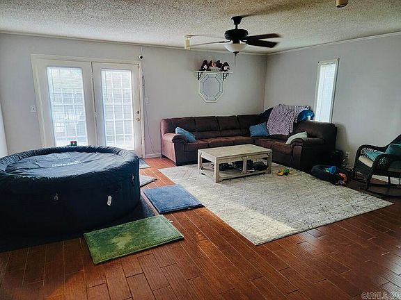 A spacious 3-bedroom, 3-bath home near Petit Jean Mountain features a large family room, walk-in closets, an office, and a 16x32 in-ground pool. It has a 30x36 shop. The yard is fenced with a 6ft privacy fence, offering a great outdoor space for relaxing or entertaining.