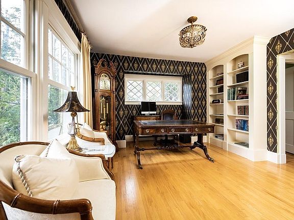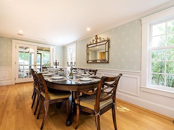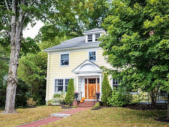 Gracious proportions and lovely details throughout this delightful Dana Hall Colonial set perfectly on a quiet cul-de-sac abutting the Brook Path will steal your heart. A recent renovation seamlessly melds the old world charm with an open kitchen family room addition and other updates showcasing the high ceilings, gleaming hardwood floors and loads of natural light. Completing the first floor is a formal living and dining room. private study, and screened in porch right out of a storybook. The second floor includes 4 bedrooms consisting of a tranquil master suite with his and hers baths plus 3 good sized family bedrooms and renovated family bathroom . A finished room on the third floor plus finished basement provide even more flexible space. A 2 car attached garage and private back yard with stone walls and blue stone patio complete this fabulous offering.