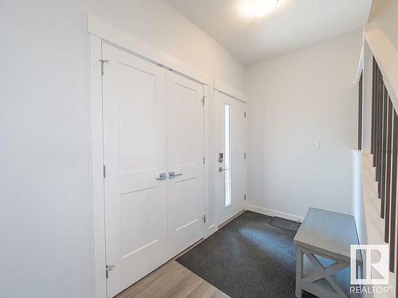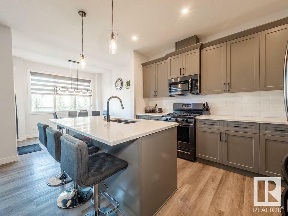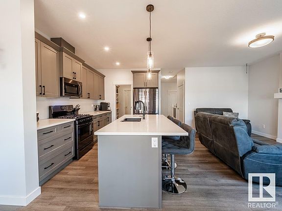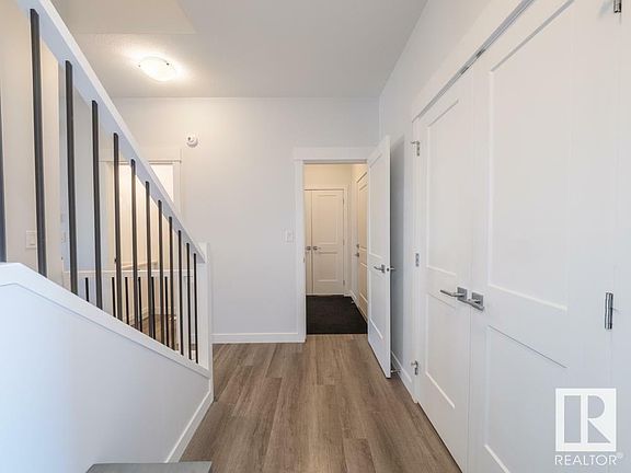Immediate Possession! This modern stylish home shows a 10+. It's located on a pie lot at the end of a quiet crescent. The entire home is carpet free and features luxury vinyl plank in a soft walnut color throughout both levels. The kitchen has high end matte black appliances including a gas stove, quartz counter tops, walk thru pantry and an eat up island. The living room features 9' ceilings & an electric fireplace with light changing mode. Also on the main level is a great mudroom and two piece powder room. Upstairs is the primary bedroom with 4 piece ensuite including a 5 foot shower and huge walk in closet. Completing this level is a bonus room, two additional bedrooms, 4 piece bathroom & dedicated laundry room with shelving. The backyard boasts a two tier 14X10 composite deck with a custom privacy wall and metal railing. Endless upgrades like A/C, custom privacy blinds, Edison lighting, keyless entry, wooden shelving, etc. Double attached heated garage. Walking distance to schools, shopping & parks.