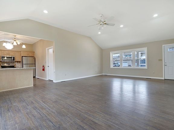 Beautiful 3 bedroom 2 bathroom ranch home with garage and huge fenced in yard. As you walk up you'll notice the covered front porch which gives the home wonderful curb appeal. When you enter you'll be greeted by a gorgeous open floorplan with stylish plank flooring and vaulted ceilings with recessed lighting. The kitchen off the living room and dining room area features granite countertops, beautiful tile backsplash, stainless steel appliances, and a breakfast bar with pendant lighting. Down the hall are 2 bedrooms with a completely remodelled hall bath, as well as a master bedrooms with another remodelled full bathroom. Out back you'll find a large deck overlooking a huge fenced in yard.