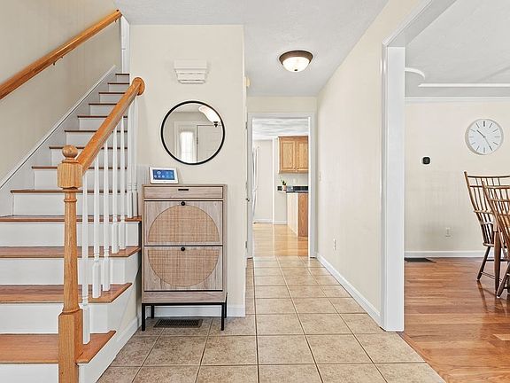 ATTLEBORO -- Situated at the end of a cul-de-sac, this spacious 3-bedroom, 3.5-bath home offers a unique layout and plenty of versatile living space. Hardwood floors span the main levels, which include a large living room, dining room, kitchen with ample cabinetry and newer SS appliance package, half bath, and separate laundry area. The expansive Great Room, featuring a gas fireplace, sits on its own level above the garage. Upstairs, the primary suite boasts two terrific walk-in closets and a private bath, along with two additional bedrooms and a full bath. The finished lower level includes three bonus rooms and another full bath, perfect for all office and recreation needs. Recent updates include a new bulkhead, freshly painted interior, new HW tank + radon system. Don’t miss this rare find with privacy, upgrades and great potential!