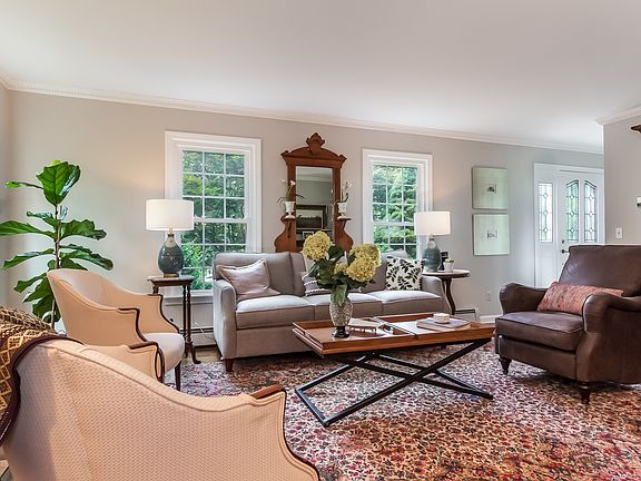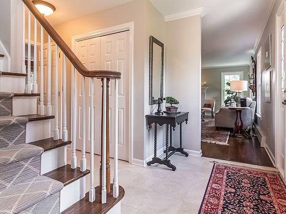 This is the home you have been waiting for-just the right size with top-to-bottom exceptional renovations and upgrades. Beautifully sited on a cul-de-sac, 15 Thames Way offers a perfect balance of open flow and intimate space. Two wood-burning fireplaces anchor the formal living room and family room. The main level includes travertine entry tile and newly refinished walnut-stained hardwood. Enjoy meals at the built-in banquette in the stylish Kitchen Company kitchen with views of the rear yard and woodlands beyond. The formal dining room carries through the dentil molding found in the living room. The family room with wet bar opens through French doors to the screen porch, decks and backyard patio. An elegant powder room has raised panel molding, grass-cloth and Calcutta gold marble counter. Every room is accented by artfully chosen light fixtures and trim. The second level offers four bedrooms, laundry room and walk-up attic. The master bedroom comprises a walk-in closet, a bath with inlaid tile work, hand-applied Venetian plaster walls, jetted tub, dual head separate shower and double sink vanity. The lower level offers natural light and is handsomely finished with sliders to the patio and almost 900-SF of play/work space. Additionally there is a cedar closet and unfinished utility space. It is all here: 2-car attached garage, central air, new windows, wired for generator hook-up. You read the phrase move-in ready often...but here it really is, ready and waiting for you.