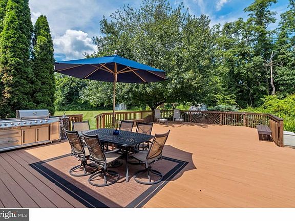 Beautiful, Sprawling 2 acre Home in Hopewell, NJ with Public Water & In-Ground Heated Pool w/Hot Tub! This amazing colonial home, situated at the end of a quiet cul-de-sac features 5 bedrooms, and 3.5 bathrooms. The first floor of the home features a large foyer, dining room, full kitchen, breakfast room, 1/2 bath, master bedroom suite, great room/living room, sun room, and laundry room. The foyer features large ceilings and windows that let in plenty of natural light. Inside of the dining room there is crown molding, wood floors, and a convenient entrance right into the kitchen. Inside the kitchen are granite counter tops, center island, double wall oven, gas range, microwave, and large cabinets for plenty of storage. Just outside of the kitchen is the breakfast room. The 1st floor master suite features a large bathroom with a heated tile floor, a jacuzzi style soaking tub overlooking the backyard, and a separate stall shower. The living room features expanded ceilings, a large gas fireplace, large windows for plenty of natural light, and a sliding door directly to the deck. As you proceed to the 2nd floor of the home, you will see a large bridge hallway that connects the 4 bedrooms with main bathrooms. This section also overlooks the great room and the entry foyer. Heading downstairs to the finished basement will also impress you. There is a 10 foot long wet bar with a wine refrigerator that is backed by custom recessed glass shelving and lighting. Opposite the bar is a custom built entertainment area with a tv mount and surround sound speakers. In addition to the bar and entertainment sections, the basement has wrap around storage space, and a separate office room. Moving to the exterior of the home, there is a large wrap around porch great for sitting in the front of the house if desired. The backyard features a hot tub, dog pen, and heated pool with patio, as well as a large deck that is great for entertaining and eating. Additionally, anyone who enjoys outdoor sports, will not grow tired of the spacious yard that surrounds the entire home. Enjoy a country setting while being only minutes away from downtown shopping and restaurants on Broad Street. Schedule your showing today!