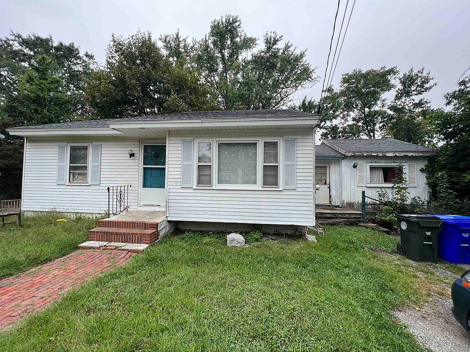 One story ranch, main level offers 2 Bedroom with living room and eat-in kitchen. Easy-care wood floors throughout. Dry basement has a 2 rooms.This quaint home with some TLC to make it your own! level backyard, quiet neighborhood and Memorial High School area. Cathedral ceilings in sunny family room w/ glass doors. Minutes to the airport, 93/293 & 101 NO FHA, VA...conventional or cash. Kitchen cabinets cabinets are in and some were installed. It';s a great flipper or investment property