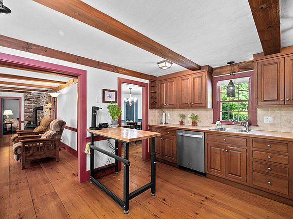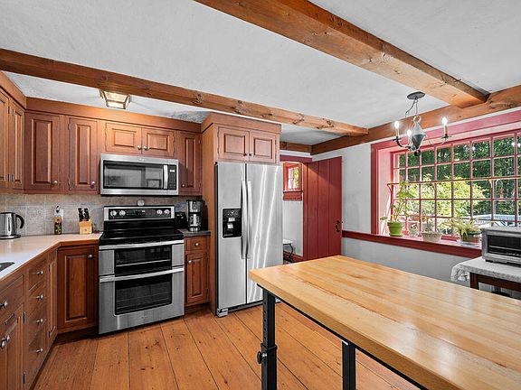 Welcome to 15 Thornton Lane! A charming Raeside~Dame reproduction home in a top rated school district with plenty of privacy and outdoor space. Surrounded by nature, it's perfect for gardening, play, or simply relaxing. Inside, you'll love the wide pine floors and exposed beams that bring warmth to the living spaces. Upstairs offers two bedrooms plus a spacious master. Recent updates include new heat pumps for efficient heating and cooling, a full-house generator, and meticulously maintained systems. A detached two-car garage (built in 2011) adds extra convenience. Homes like this don't come around often. Don't miss it! Open House this Saturday, September 27th 10am-12pm!