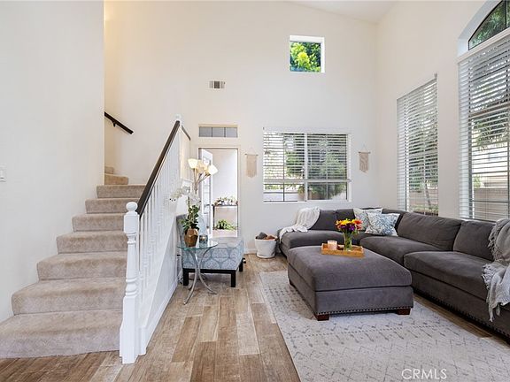 Welcome to the beautiful city of Rancho Santa Margarita and the quaint community of Tierra Montanosa. This gorgeous three-bedroom, three-bath unit features tall, vaulted ceilings with an open, airy feel. Enjoy the convenience of one bedroom on the lower level, which can also be used as an office, and a spacious kitchen with tons of counter space and storage (even under the stairs). Other features include a gas fireplace, indoor laundry, and direct access from the attached 2-car garage. Enjoy outdoor dining on the large patio blanketed by private, shady trees. Upstairs, you will find two more large bedrooms with private bathrooms and ample closet space. Discover the myriad activities offered with your residency, including community parks, pools, sports courts, pickle balls, hiking trails, and access to the Beach Club at RSM Lake. The home is within walking distance of the esteemed Blue Ribbon Melinda Heights Elementary School, has easy access to shopping & dining, and is within a short drive to the 241 freeway. It's the complete package!!