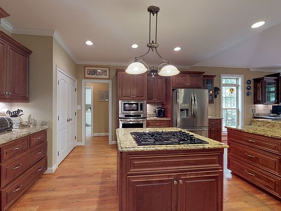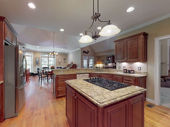Spectacular 1+ acre 4830 sq ft with awesome in-law suite or man cave with kitchenette, living room with fireplace, bedroom & full bath on lower level with access to stone patio! 3 car side entry garage! Huge living room with space for game area, gas fireplace, vaulted ceiling, built-ins & wet bar! Large dining room! Awesome office or den with gas fireplace, built-ins & desk area! Screened porch with stone floor! Open floor plan with spacious kitchen, granite counter tops, tile backsplash, island, gas top stove, built in microwave, pantry & large breakfast room with bead board & vaulted ceiling! Owners suite main level with tray ceiling, door to porch, bathroom with 2 vanities, 2 walk in closets, water closet, tile shower & floor! Plus additional 3 bedrooms upstairs! 4.5 baths! Laundry room with tile floor, pantry, sink & folding area! Beautiful backyard plus fenced in area for your favorite puppy! Full sprinkler system! Upstairs HVAC new last yr!