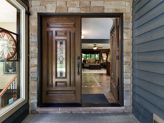 DESIGNED TO DELIGHT......... BUILT TO ENDURE......... One of a Kind Property situated in a Private Setting on a 1.18 Acre lot on the Pond with Amazing Views - Lots of Mature Trees and Beautifully Landscaped. This Home was Re-Designed in 2011. It has a Walk Out Basement with Lower Patios aside from Oversize Deck (Gas Hookup Avail) off the Kitchen/Dining on Main Level. The Interior Re-Design consists of a Very Open Floor Plan on both the Main Level and the Basement. The home "Boasts" 3 Large Bedrooms ( 2 Primary Suites w/ include Gorgeous Bathroom Suites, Oversize Walk In Showers, Custom Cabinetry and Lighting, and Custom Designed Closets ! The Kitchen-Dining and Living Area on the Main Level is Completely Open w/ Gorgeous Custom Cabinets w/ Pullout shelves, trash/recycle bins, w/ Under & Over Cabinet Lighting, Upscale Appliances, and Lots of Cabinet/Counter Space ! There is a Wood burning Fireplace in the Main Floor Living Room, and a Gas Fireplace between Library and Family/Theatre room Downstairs. There is a Large LaundryRoom/Drop Zone area conveniently located between the Garage and Kitchen. The Lower Level has Open Family Rm and Custom Wet Bar w/ Mini Kitchen w/ Dishwasher and Perfect for Entertaining. There is a Fitness/Media room in the basement for Exercise Equipment, Bike, barbells, etc. The Outdoor Patio and Fire Pit W/ separate grate and steel covers, storage boxes for wood, cushions, torches, etc. The Furnace and Central Air has been updated as well. This Home has an Amazing 3-Car Heated Garage and Workshop (17 x 12) w/ built in shelving, ample lighting and electrical outlets. Separate mechanical room for additional Refrigerator and the Boiler. There is also a Half Bath (1 of 2 Half Baths) off the Garage for easy access. This is a Beautiful Private Setting and you won't want to miss out !! TAKE A LOOK !!!