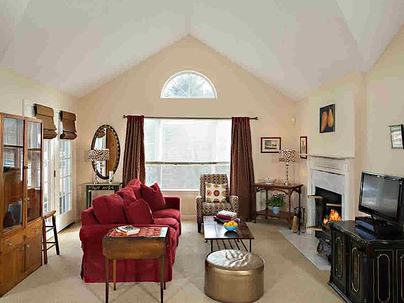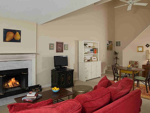 Cedar Valley end unit Townhouse on a cul de sac overlooking woodlands. Quiet & private, this lovely home is a joy to show. The spacious LR has cathedral ceilings, a fplc, a DA, French drs to the patio, picture windows & is open to the kitchen. The Mst ste. is on the 1st flr & has a wic, a full bath & seating area. The foyer & powder rm complete the 1st level. Upstairs, another BR ste w/a full bath & plenty of closets. The finished bsmt has a fam rm, an office, a powder room & storage. Amenities incl a pool, clubhouse & tennis courts.