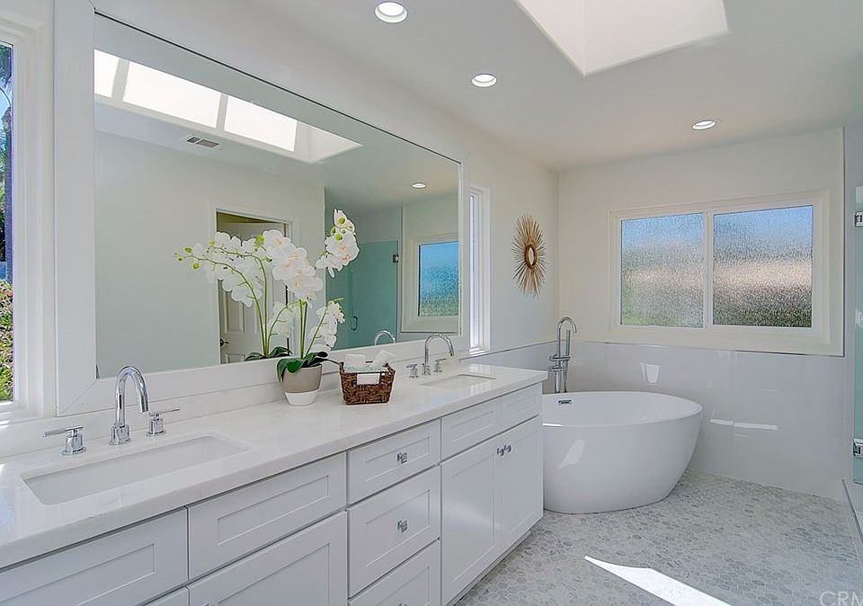 - RoomBathroomFeatures: Shower in Tub, Bathtub, Double Sinks In Master Bath, Remodeled, Separate tub and shower, Upgraded, Soaking Tub