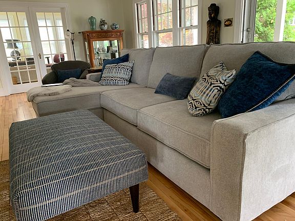 Sunny hillside home with ocean views from many windows, large front porch for sitting, and comfortable places throughout to live and work. The house is just up the hill from the Falmouth town landing, in a pleasant neighborhood. It has three bedrooms upstairs, one bath upstairs and one down. It is very comfortably furnished with a large TV in the living room and two smaller ones elsewhere. There's a gas stove in the kitchen and plenty of cooking accessories. The house is available for the month of May. This is a one month spring rental for $3,350. We assume that your heating and electric bills for the month will not go over $350 (they never have). Heating plus electric expenses over $350 will be deducted from your deposit. No pets please. No smoking please. We have parking spaces for 2 cars outside. No garage available.