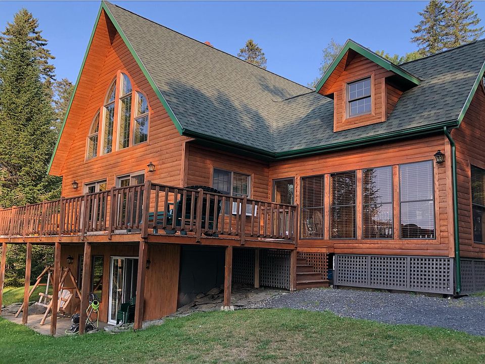 Waterfront lot on Eagle Lake! Enjoy beautiful sunsets from the sunroom. BBQ in the outside kitchen. Fall foliage enjoyed from the living room in front of the wood fire. Immaculately designed home. Spare unfinished room upstairs would make an awesome office or extra sleeping room. Full dry basement with additional wood stove. New heat pump installed. New shingled roof in 2021. Located in the town of Wallagrass bordering the town line of Eagle Lake. Lot size waterfront 105 feet by 170 feet by back line is 200 feet. Plenty of room to build a garage. Fully equipped outdoor kitchen 16 x 18 covered building. Also extra storage shed for your tools.