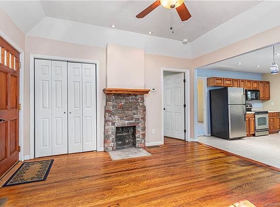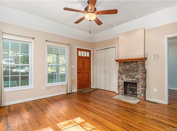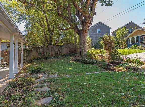 Cute bungalow on a cul-de-sac street in West Asheville offering neighborhood living. Home has full length, covered, wide front porch for outside entertainment as well as back deck to take in the city view. Partially fenced back yard with fire pit and two rare, very healthy pecan trees. Home has nice hardwood floors in main living area with original fireplace. Kitchen with lots of cabinets and counter space. Large storage, laundry room with additional half bath. Tall crawl space for additional storage and storage under back deck.